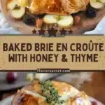 While Baked Brie in Crust with Honey & Thyme is a delectable indulgence, it’s important to appreciate its nutritional aspects. Brie is known for being a source of calcium and protein, contributing positively to your daily nutrient intake. Plus, the honey offers natural sugars that provide a quick energy boost and the thyme, loaded with antioxidants, promotes overall well-being.