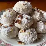 Delicate, crumbly cookies made with butter and chopped pecans, coated in powdered sugar for a snowy finish.