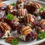 A delightful combination of sweet dates, creamy cheese, tart cranberries, and crunchy pecans, perfect for gatherings.