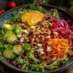 Imagine a salad that brings together the earthy crunch of fresh greens, the sweet-tart burst of citrus, and the delightful crunch from festive toppings. That’s exactly what you’ll find in this dish. The vibrant greens, such as kale or arugula, provide a hearty base, while the seasonal additions like pomegranate seeds and slivers of orange or grapefruit add bursts of color and flavor.