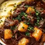 There’s no better way to bring friends and family together than with a warm pot of Guinness Beef Stew simmering on the stove. Its inviting aroma beckons everyone into the kitchen, and before you know it, they’re gathered around the table, sharing stories and laughter. This dish is perfect for chilly evenings, rainy afternoons, or cozy family dinners. It’s impressive enough for entertaining yet simple enough for weeknight meals. It never fails to elicit those satisfied sighs and happy smiles that remind me why I cook.