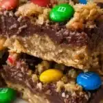 Delightful M&M Chocolate Fudge Oatmeal Bars combining rich fudge, chewy oats, and colorful M&Ms for a perfect sweet treat.